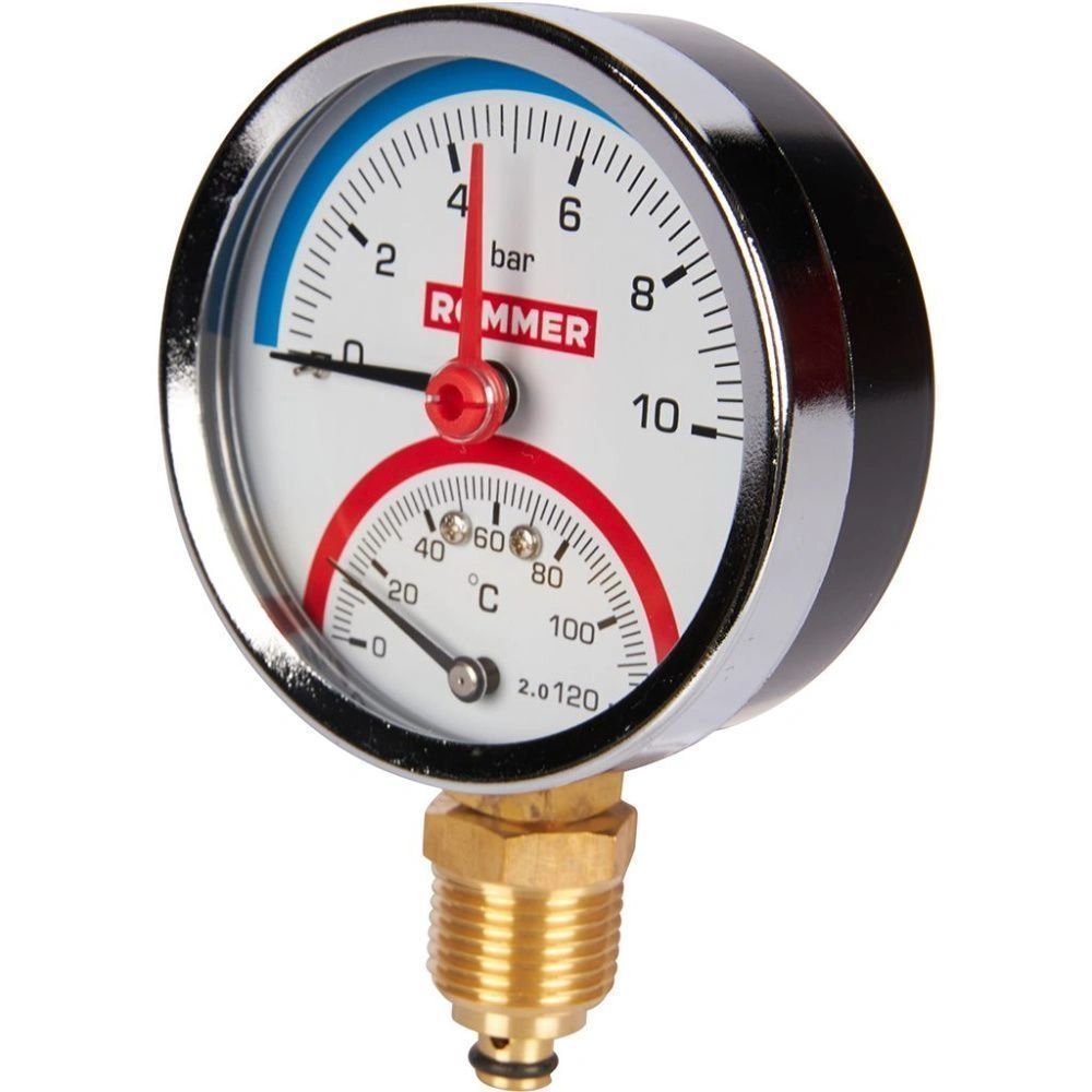 Купить Термоманометр радиальный, Dn 80 мм 1/2 , 0...120°C, 0-10 бар, ROMMER в Воронеже, Липецке, Тамбове 🚚 Доставка по всей России! Товары в наличии по актуальным ценам в Экопорт!