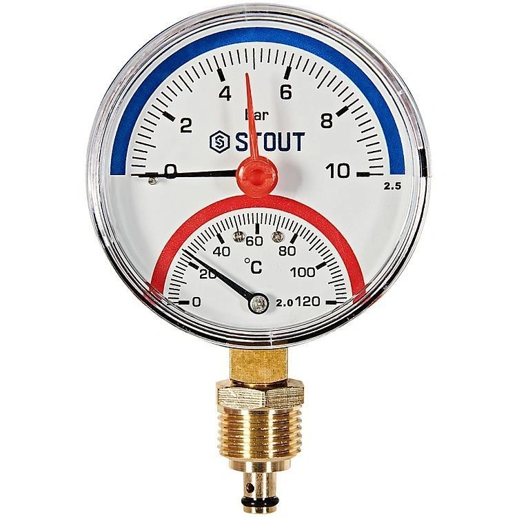 Купить Термоманометр радиальный (0...120°C, 0-10 бар), Dn 80 мм 1/2, STOUT в Воронеже, Липецке, Тамбове 🚚 Доставка по всей России! Товары в наличии по актуальным ценам в Экопорт!