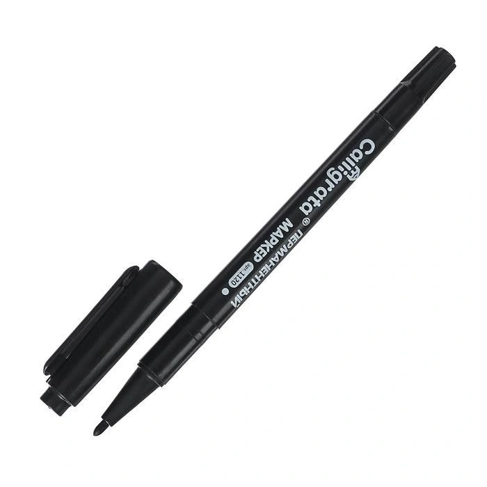 Перманентные маркеры отталкивают влагу, а стереть их можно только растворителем. Маркер перманентный двусторонний "1120" черный 2 мм/0,7 мм — высококлассный представитель таких маркеров. Стекло, дерево, металл, керамика и конечно бумага — надпись на любых поверхностях гарантировано останется яркой и стойкой даже через несколько лет.