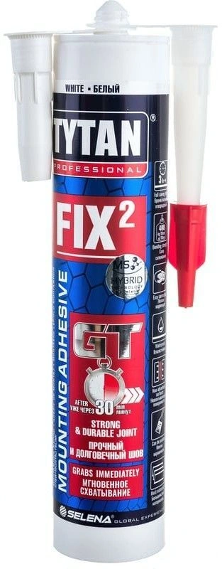 Монтажный клей TYTAN PROFESSIONAL Fix2 GT гибридный с мгновенным начальным схватыванием, 290 мл 73891 - это клей на основе гибридных полимеров с мгновенным начальным схватыванием и ускоренным временем отверждения.