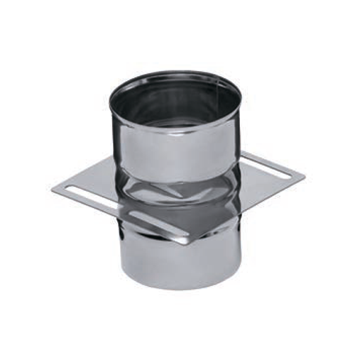 Одностенная монтажная площадка диаметром 130 мм из нержавеющей стали 430, с толщиной стенок 0,8 мм, служит для установки дымохода на стене или крыше здания, обеспечивая его надежное крепление и защиту от внешних воздействий.