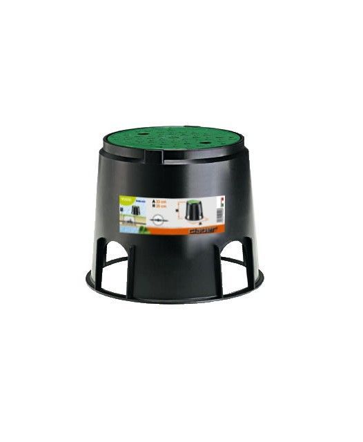 Колодец применяется в системах полива или для резервного доступа к подземным коммуникациям. Колодец имеет перфорацию в корпусе под трубы. Изготовлен из прочного пластика. Имеет зеленую защитную крышку, которая незаметно впишет короб в любой ландшафт.
