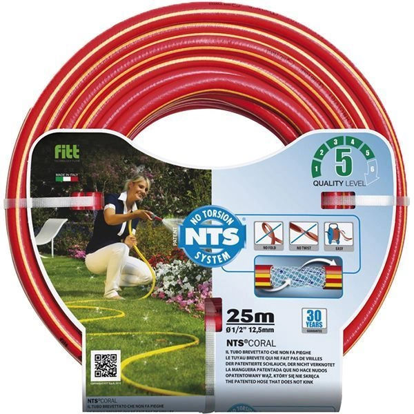 Армированный шланг для полива Coral изготовлен из 5 слоев, что дает шлангу особую прочность и надежность. Шланг идеально подходит для огородно-садовых работ. Уникальный внешний вид - красный внешний слой с яркими полосками. Устойчив к появлению водорослей. Не боится изгибов и перекручивания. Диаметр: 3/4 дюйма. Длина: 50 м.